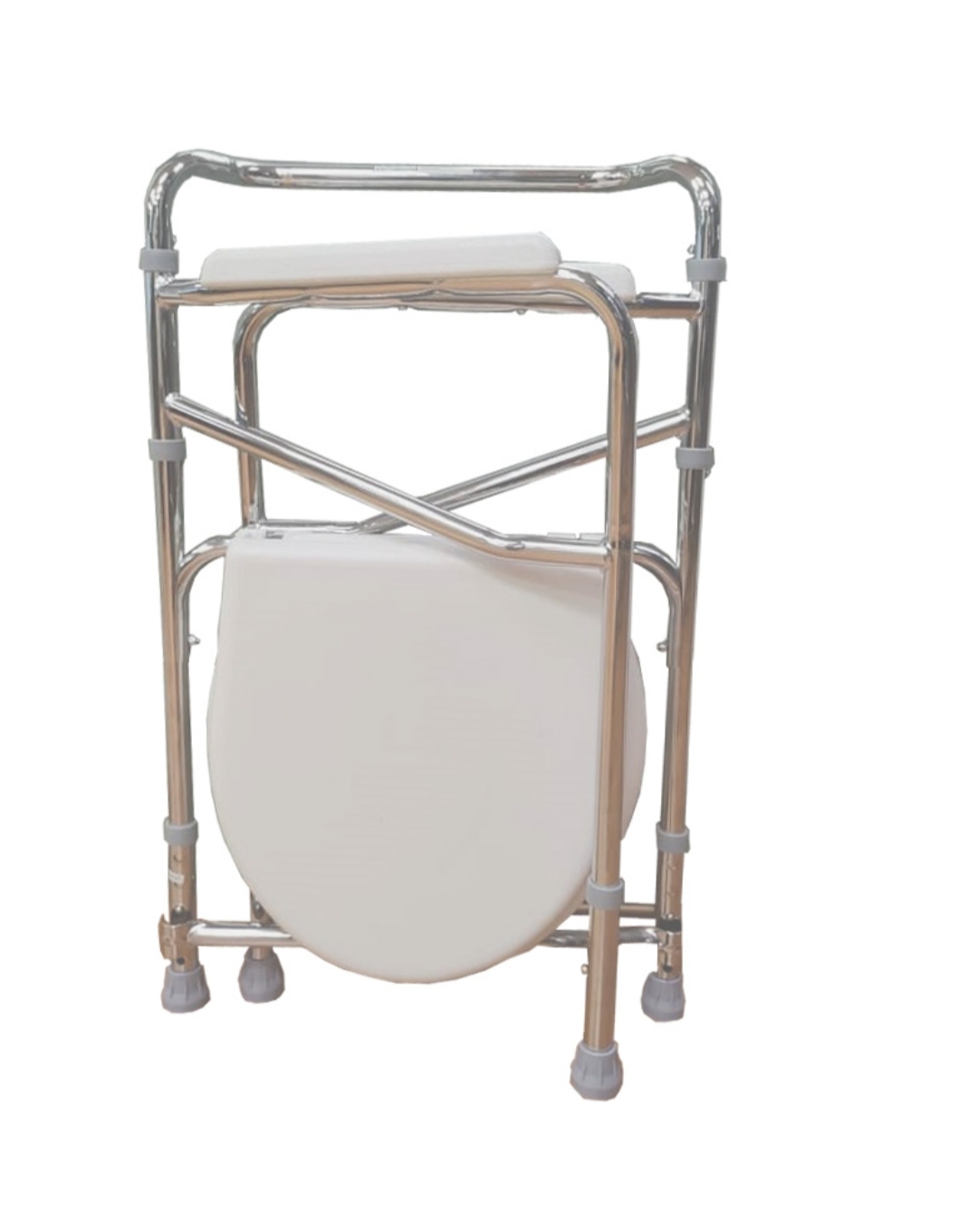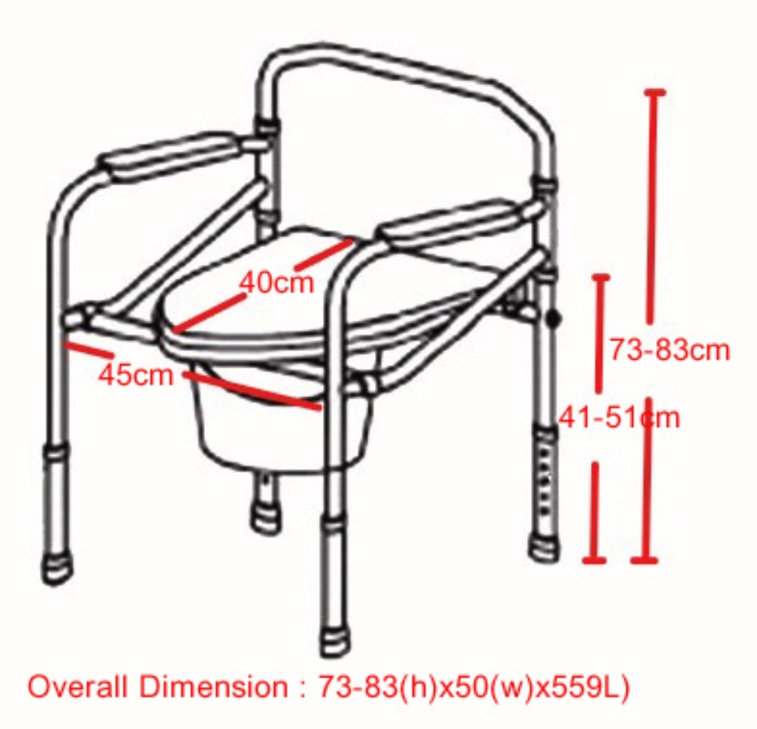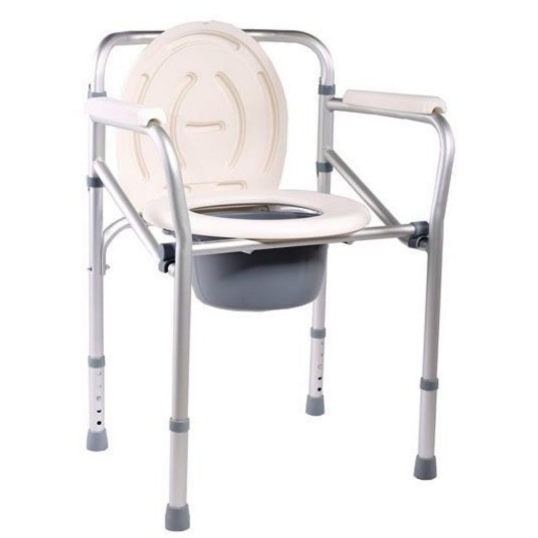 Aluminum folding commode chair provides a convenient option for those needing an easily accessible toilet, the bariatric commode is exceptionally sturdy, being manufactured with aluminum frame. The adjustable commode chair includes a standard bucket with a lid. Nonskid rubber tips on each leg provide extra stability while the soft armrests provide a comfortable, secure grip.