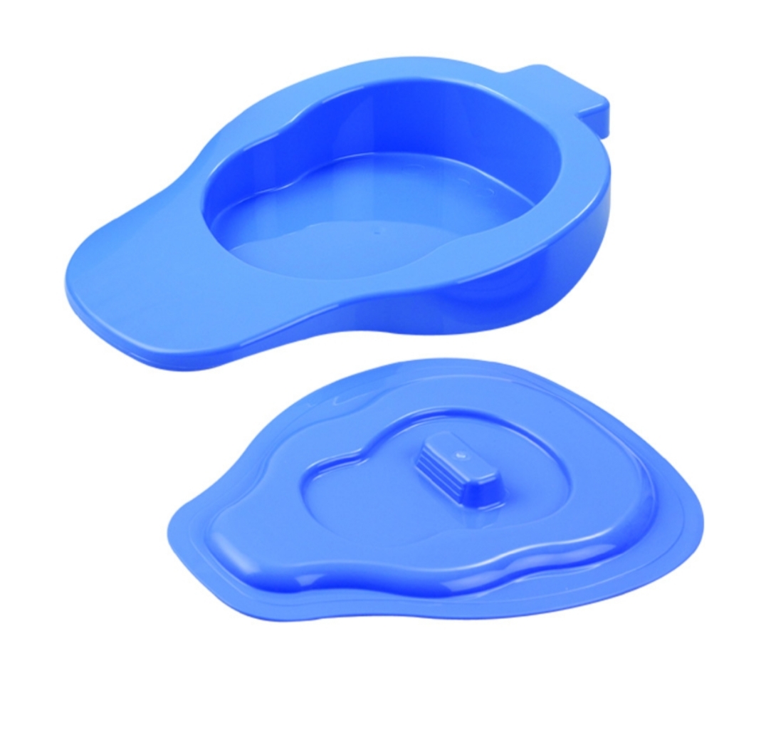 A fracture bedpan is a specialized type of bedpan designed for patients who have difficulty moving or those with injuries, particularly fractures of the lower body. It has a flatter design and a wider opening to accommodate individuals who may need to remain in bed due to their condition. The shape helps to make it easier for the patient to use without causing pain or discomfort.
